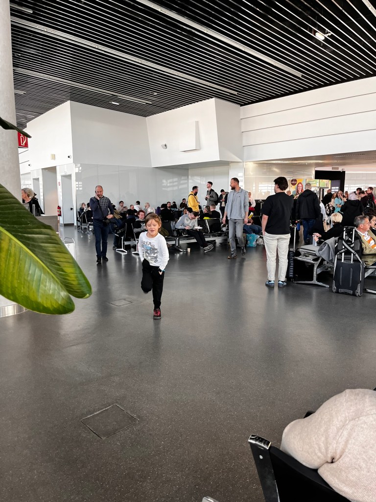 Na letisku sme si kúpili len vodu do lietadla, keďže svoju vodu za kontrolu nedostanete. Všade bolo plno ľudí, čakalo sa aj na pánskom WC 🙂