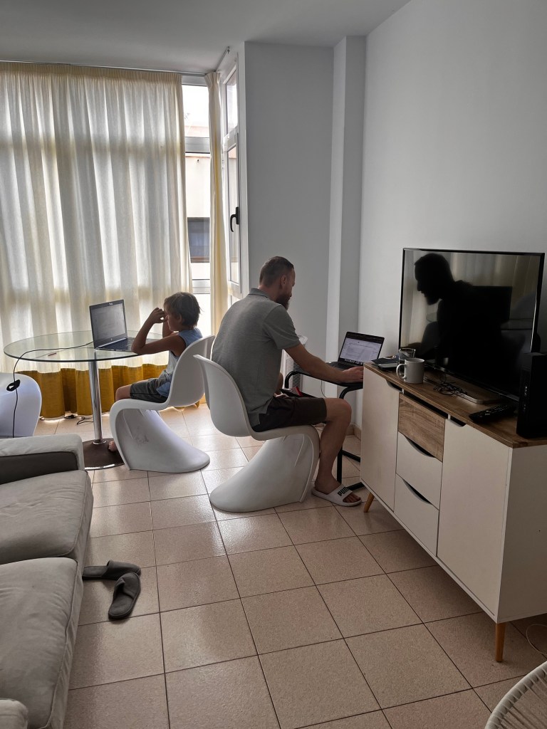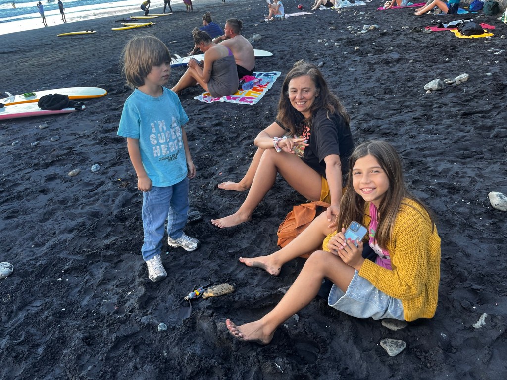 Apartmán bol čistý a útulný, s bočným výhľadom na oceán. Po krátkom vybalení sme sa rozhodli ísť na pláž, kde sme sa stretli s Ankou a Arthurom s deťmi. Pláž bola krásna, s čiernym pieskom a intenzívnymi vlnami, ktoré sa hodia pre surferov.