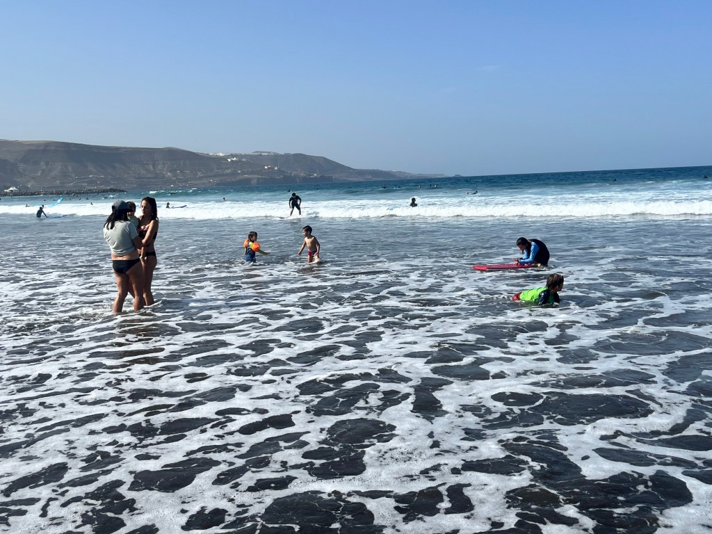 Dnešnú nedeľu sme pôvodne plánovali začať skorým výletom na Dunas de Maspalomas, ale keďže sme si nezapli budík, vstávali sme neskôr, než by bolo vhodné. Navyše, počasie hlásilo úplne jasno, čo by znamenalo, že piesok na dunách by sa rýchlo prehrial. Rozhodli sme sa preto stráviť deň lokálne a užiť si pláž v Las Palmas.