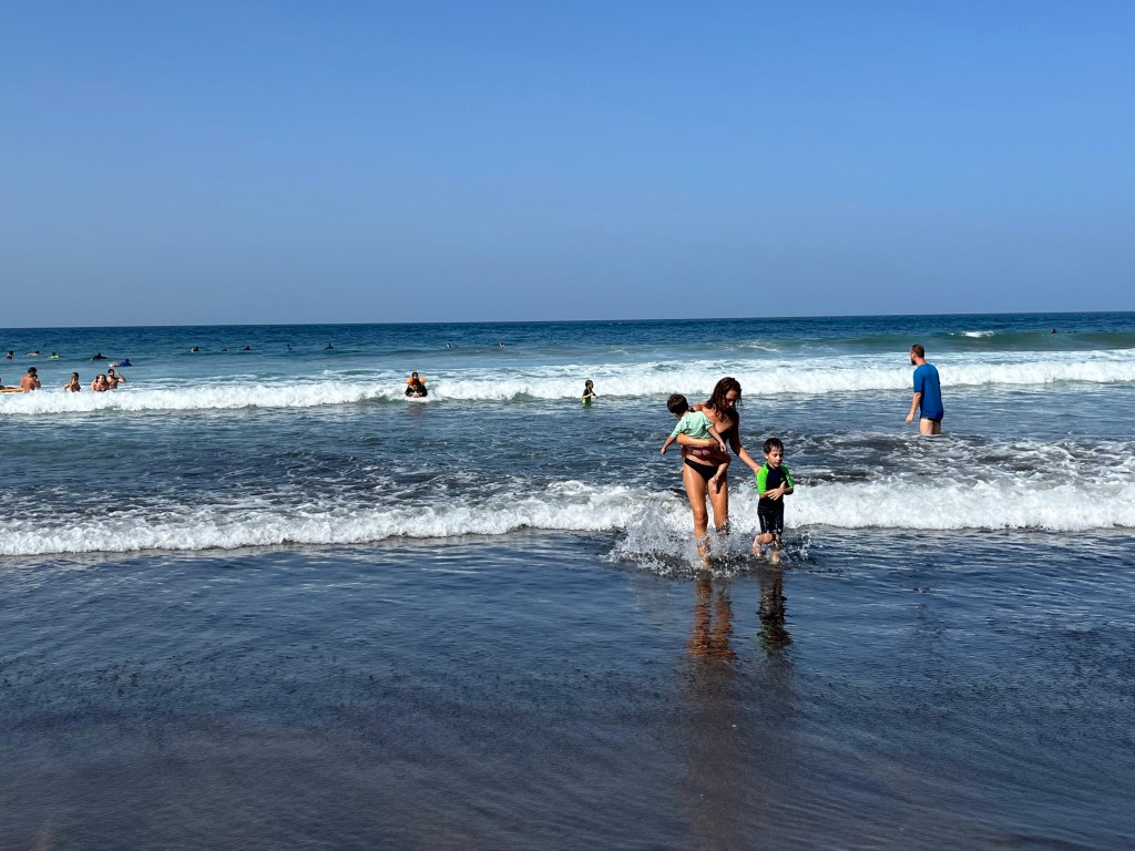 Na pláži sme začali okolo 10. hodiny a zostali sme tam až do 18. Postupne sa k nám pridávali ďalší priatelia – najskôr ocino Arthur, potom aj srbsko-talianska rodina s Dariom a Leom. Deti sa prehrali do sýtosti, zatiaľ čo rodičia striedavo relaxovali alebo sa bavili v mori.